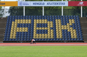Vandaag, 18 mei, stond de tweede wedstrijd voor de U14/U16 competitie op het programma. Dit keer dichterbij dan Enschede. Namelijk … in Hengelo (15 min dichterbij). Gelukkig is daar het prachtige FBK stadion. Hier zijn ook binnenkort de Asics NK senioren. De baan en het stadion waren dus helemaal in orde. Een groep van 16 junioren met hulpouders en trainers konden daarom ook mooi plaats nemen op de nieuwe stadionstoeltjes.