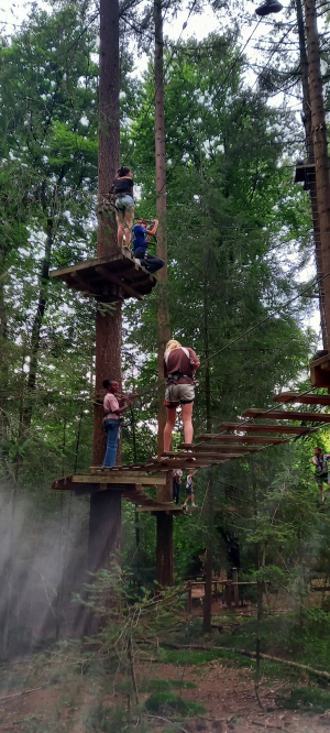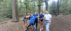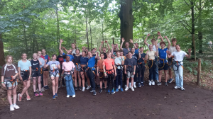 Met bijna 30 junioren vertrokken we richting Apeldoorn. Na een korte instructie en het aantrekken van de klimgordels, konden de junioren kiezen uit maar liefst 10 verschillende routes, verspreid door het bos. Voor iedereen was er wat wils: van makkelijke parcours op 2 meter tot spannende tokkelbanen en uitdagende hindernissen tot wel 18 meter hoog! Voor echte waaghalzen was er ook nog een bundy jump en vrije val!