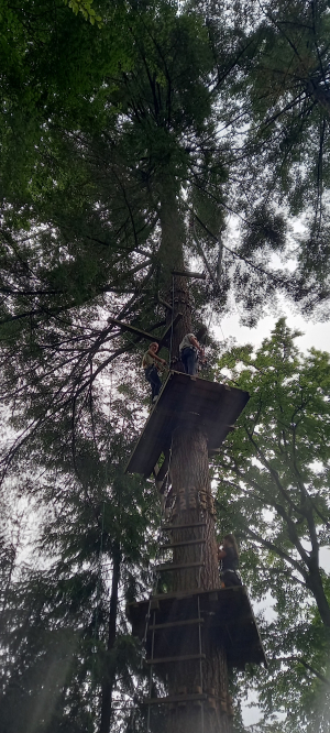 Het was mooi om te zien hoe snel en behendig onze junioren de verschillende routes aflegden. Sommige junioren vlogen als echte apen door de bomen, terwijl anderen hun grenzen verlegden en hun hoogtevrees overwonnen. Er werd veel gelachen, soms een beetje gespannen gekeken, maar altijd met een glimlach als het gelukt was om een moeilijke hindernis te trotseren. Tussen al het geklauter door was er natuurlijk tijd om even bij te komen met wat lekkers.